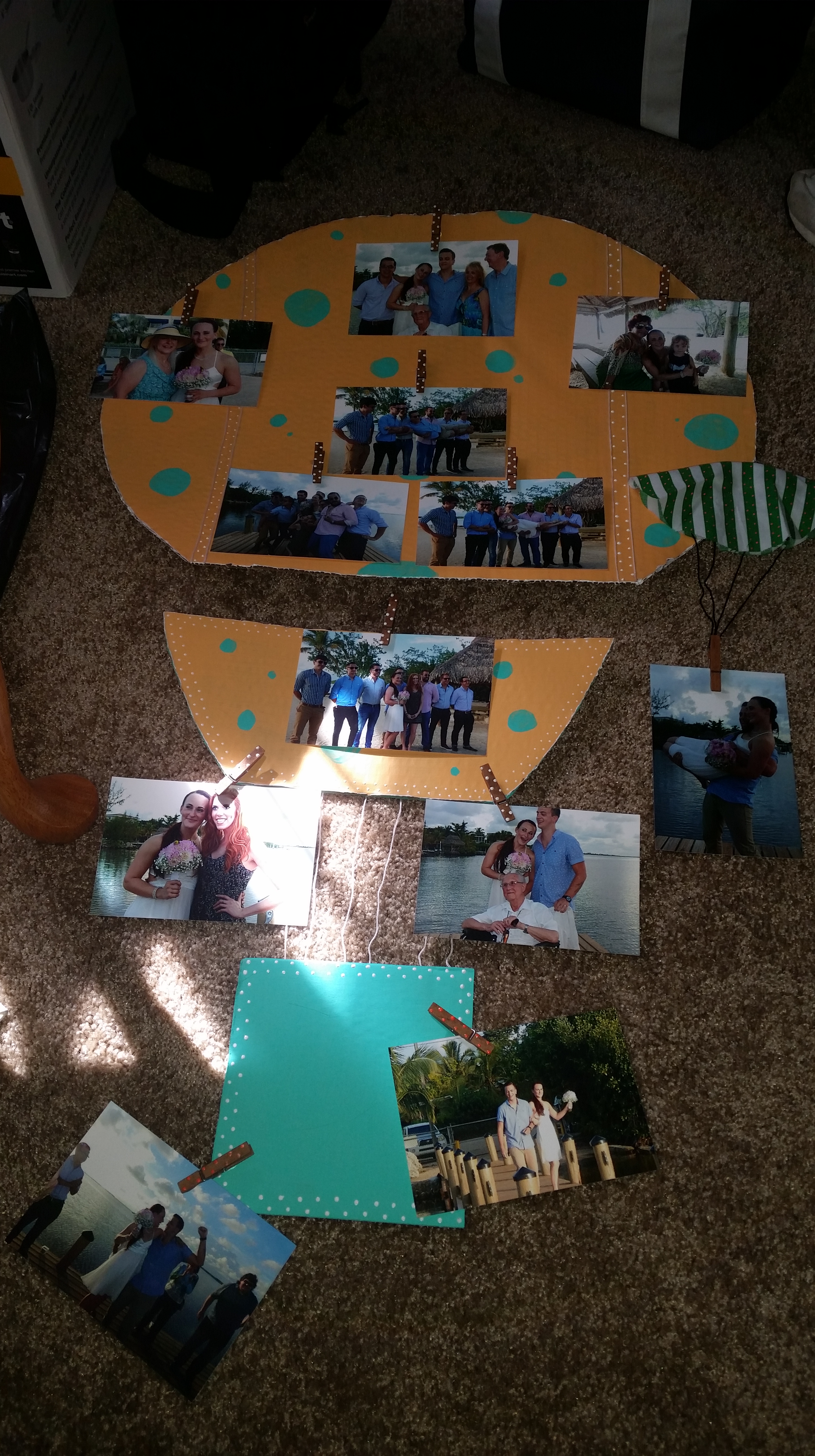 A hot air balloon I fashioned out of cardboard, clothes pins, paint, and glue.