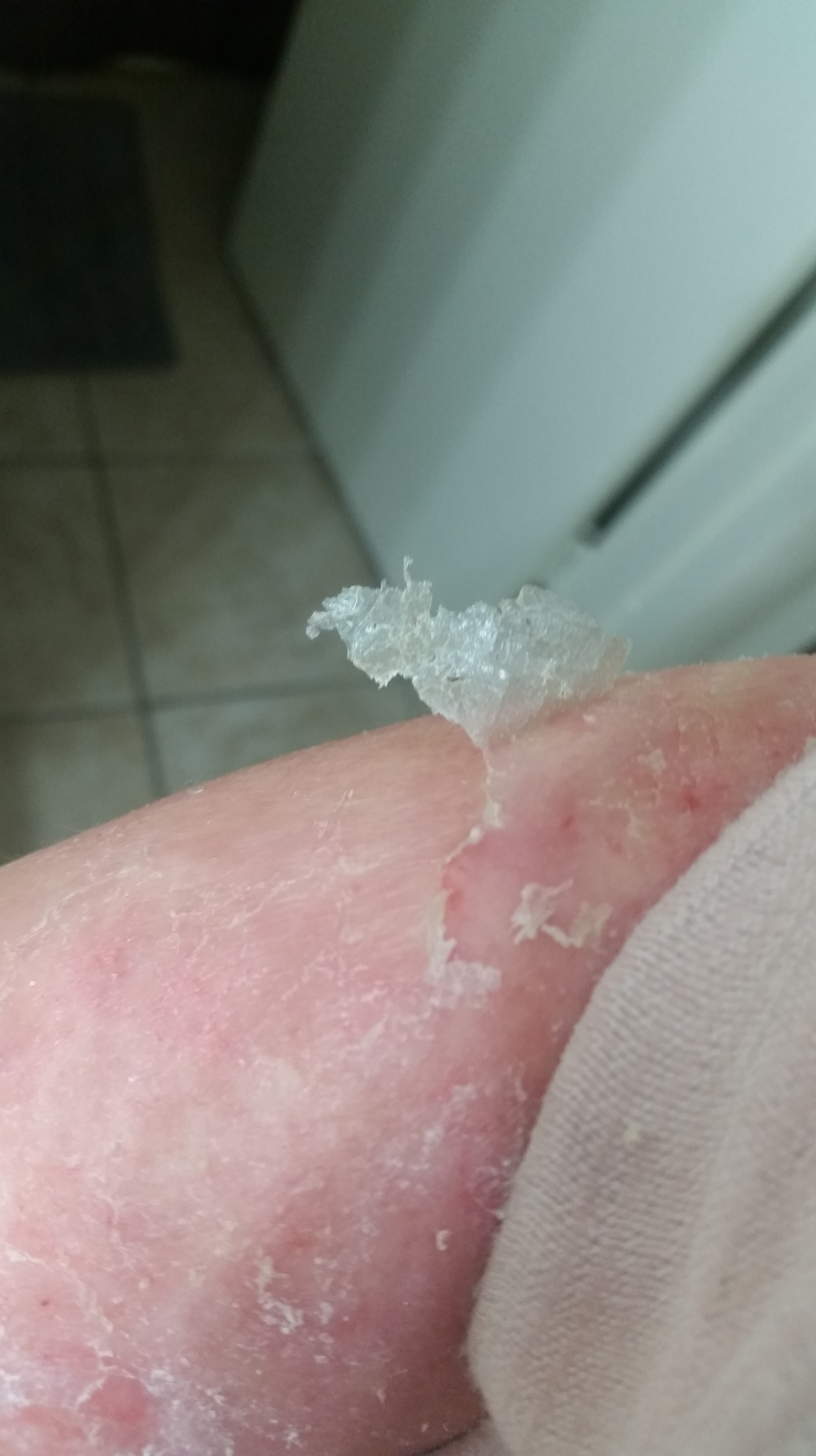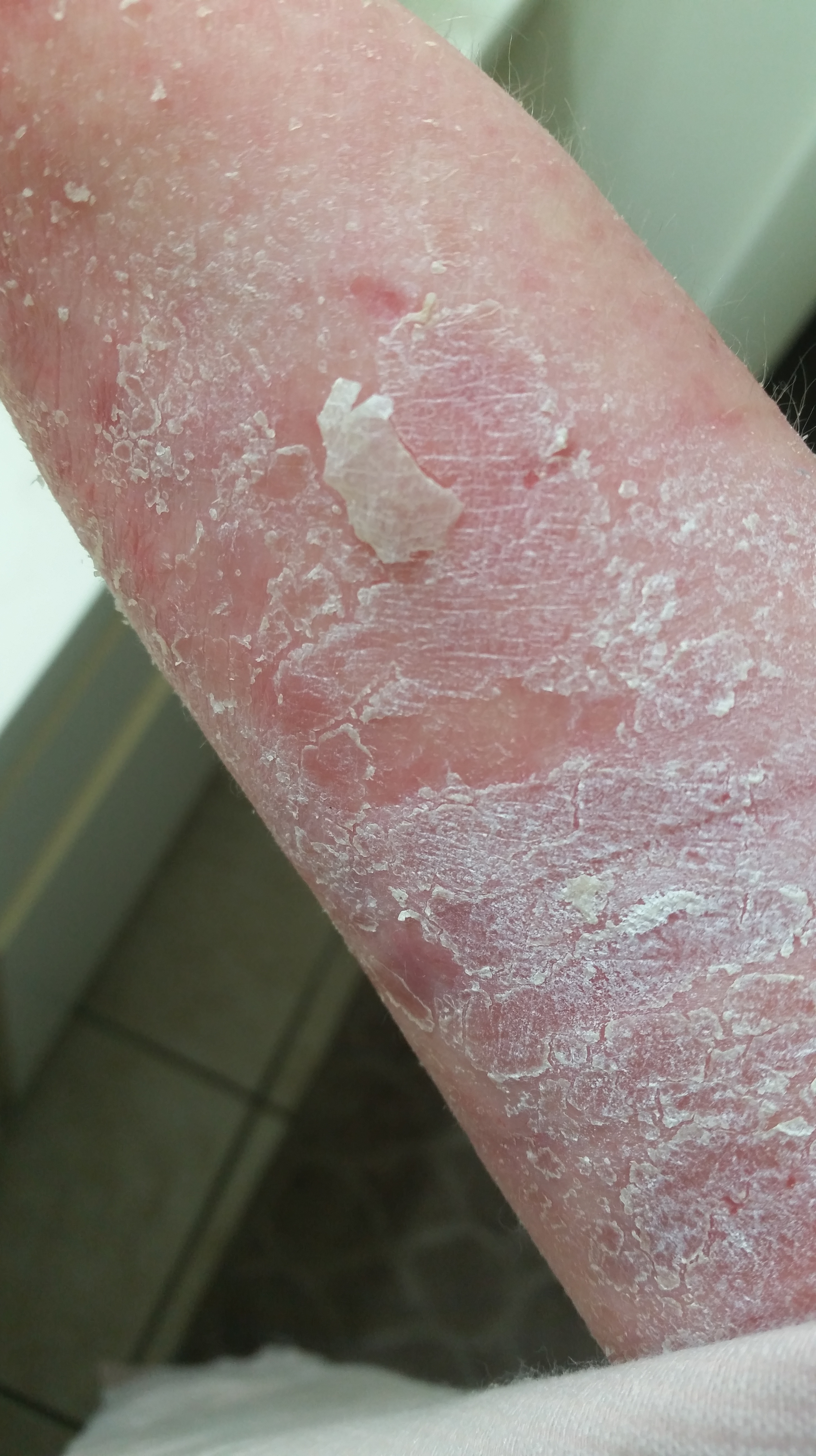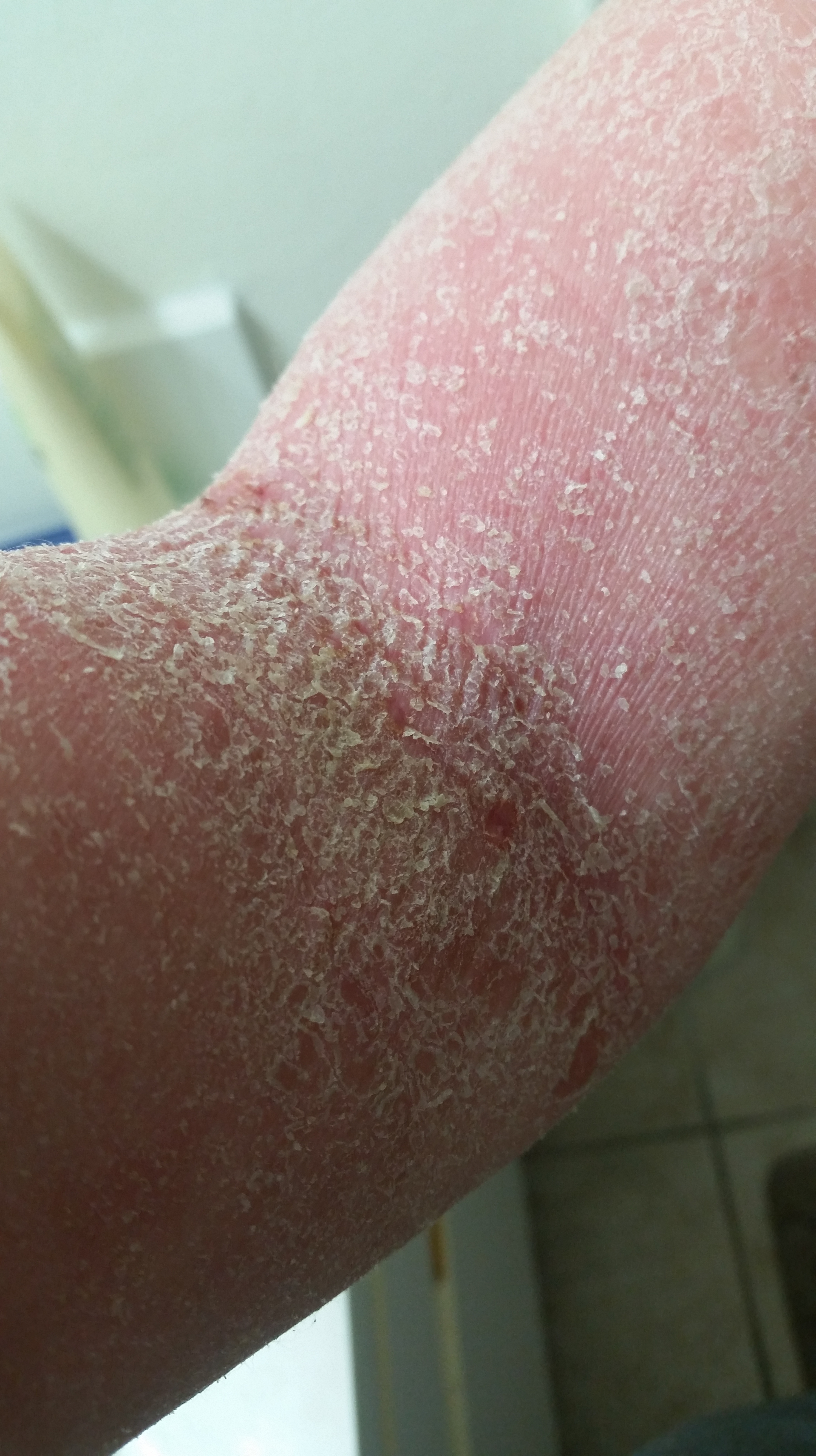 I never, in all of my life, thought someone could literally shed like a snake. I could barely move my mouth. My arms were so swollen and so tight that I couldn’t fully extend them. I STILL can’t fully extend them without ripping my skin, but when they were swollen, it was a nightmare. I was astonished at the plastic-like feel of my skin.