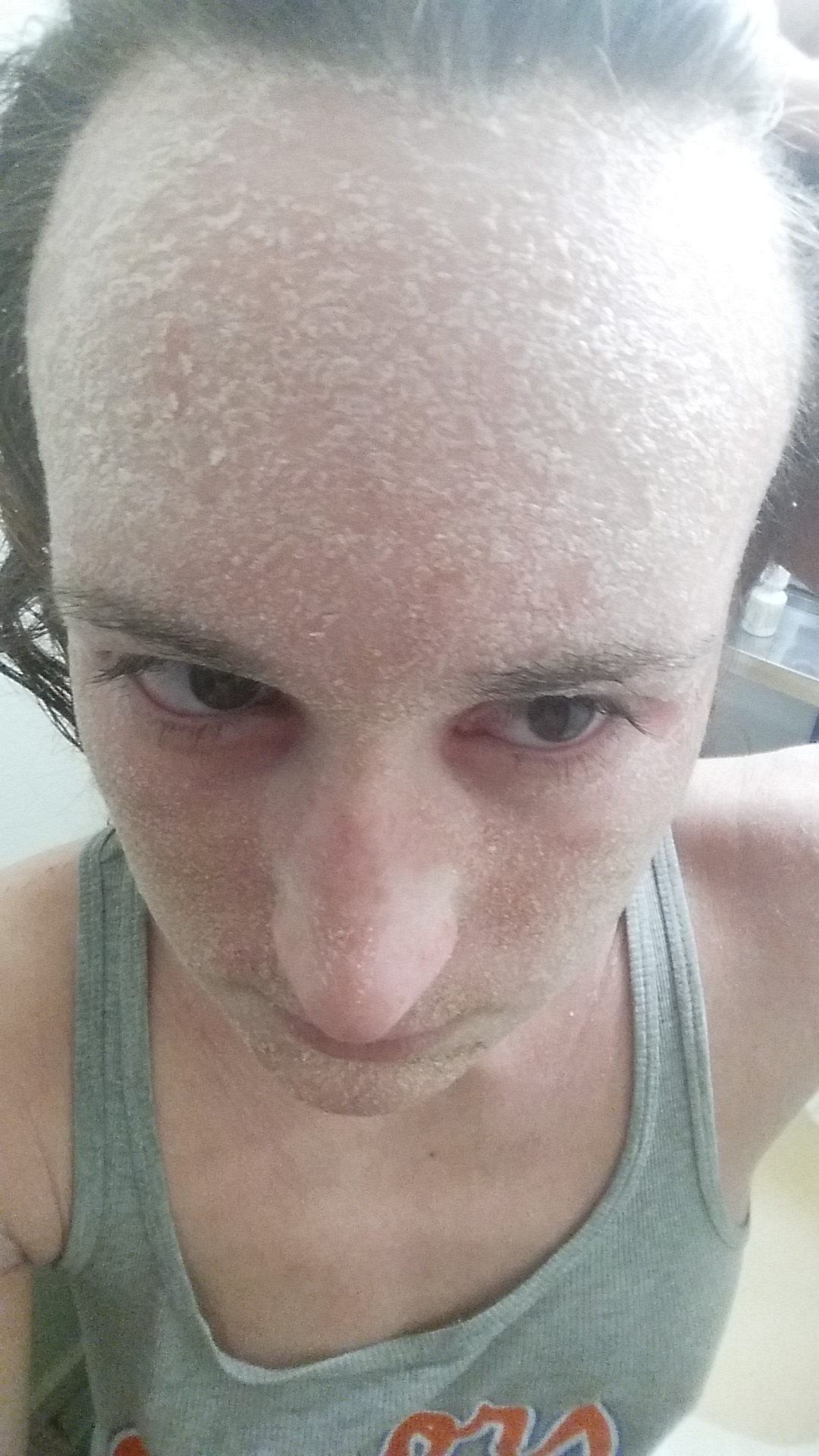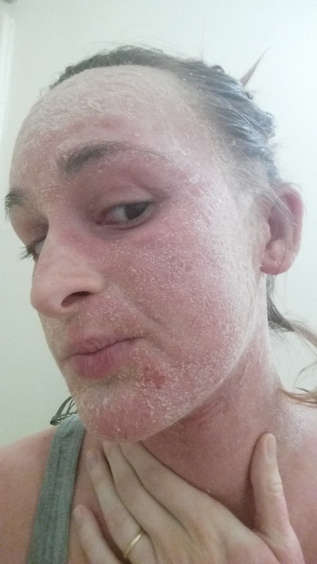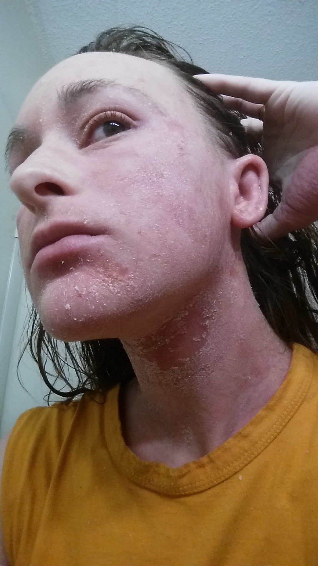 I never, in all of my life, thought someone could literally shed like a snake. I could barely move my mouth. My arms were so swollen and so tight that I couldn’t fully extend them. I STILL can’t fully extend them without ripping my skin, but when they were swollen, it was a nightmare. I was astonished at the plastic-like feel of my skin.