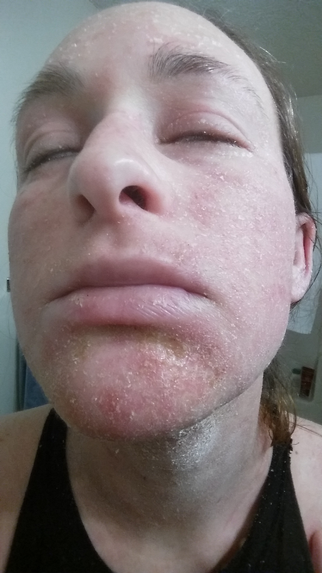 From an oozing standpoint, it’s still been a struggle. However, I now have Sudocrem that I wrap up with for my arms and legs. I’ll put it on my face as well if she’s oozing badly. Not only is it creamier than regular zinc, but it smells of lavender. SOOOO nice for my nostrils!