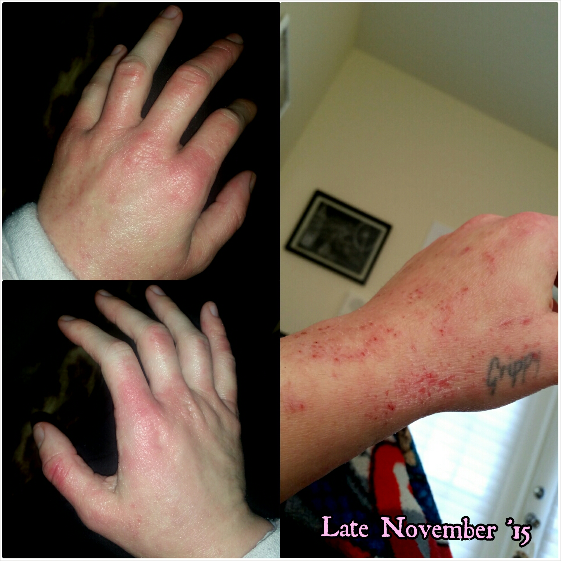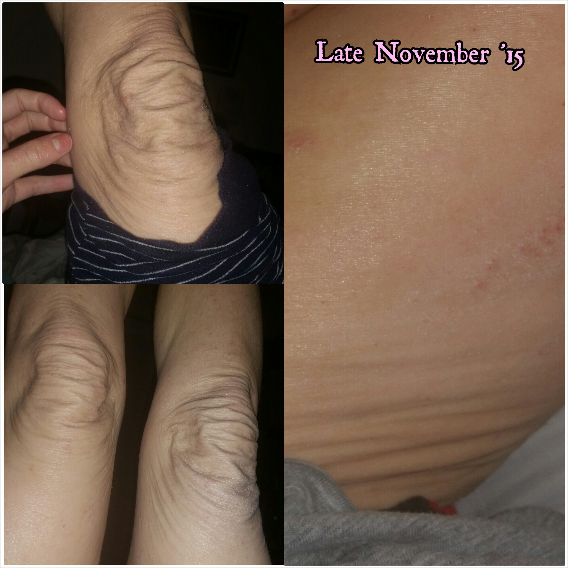 This is a weird one. I know you can’t see it well, but there was a week, just one, where my lip kept swelling. At first I panicked because I know about Herpeticum (eczema herpes basically that can come out of nowhere and do serious harm) so I was trying to figure out what to do. But, within an hour, the swelling went away. It kept doing this for a whole week. I also got a shot of my knees, which were horrifically itchy and thick before the anti-fungal meds.