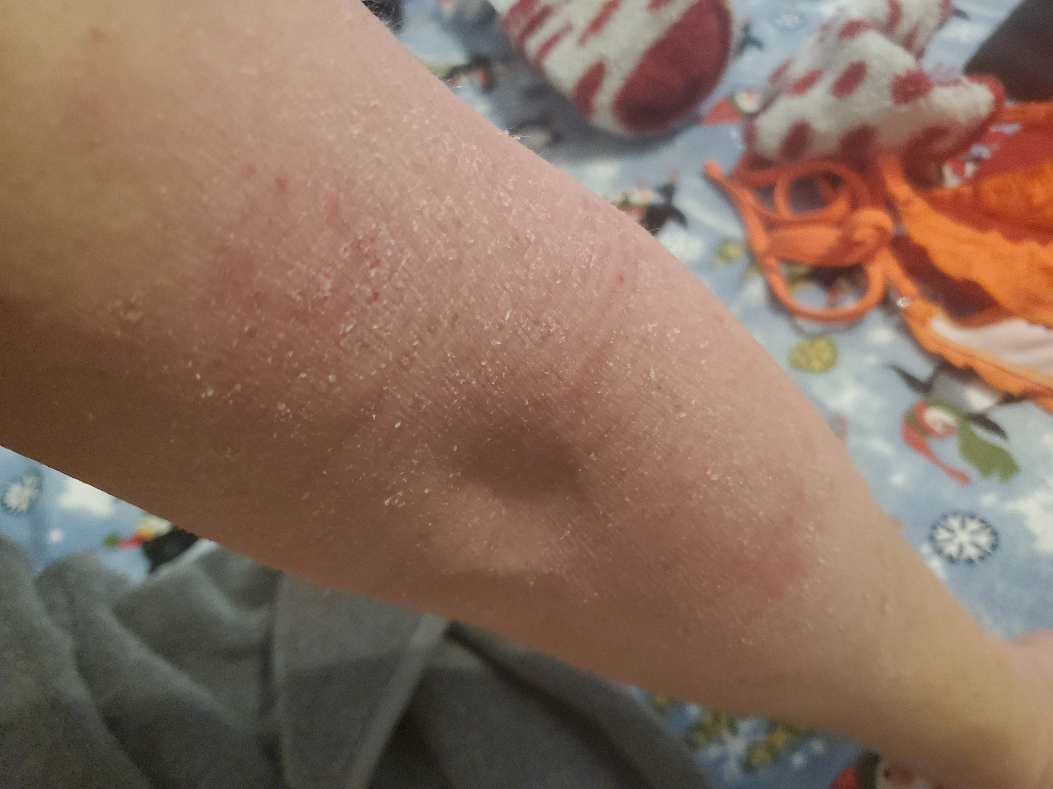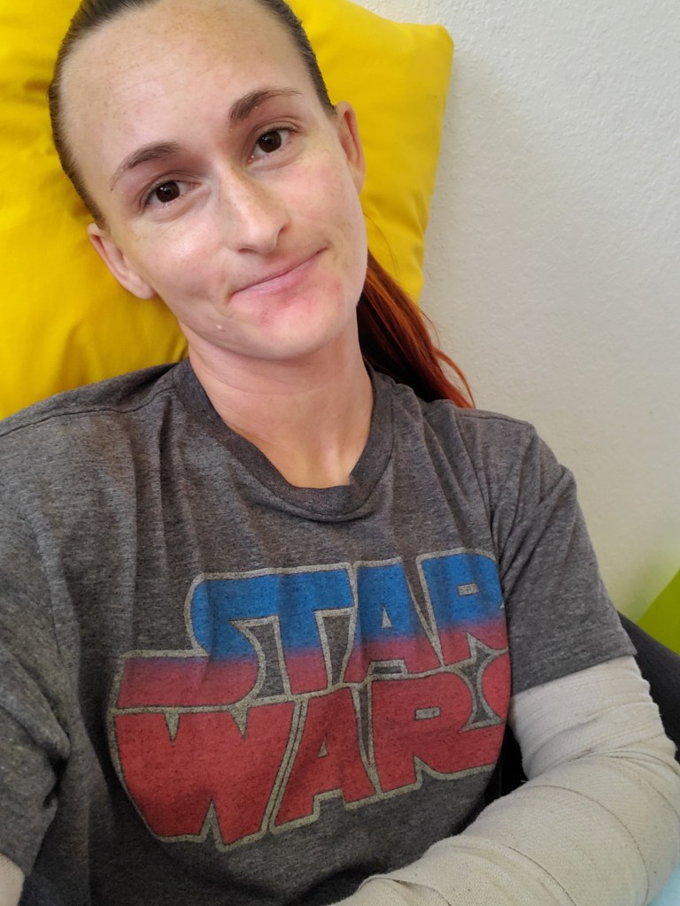 It’s definitely still hard to sleep. Laying on my back, not moving my leg, just makes me hot and itchy. The itchy is more because of my skin, which has made this process all that much harder anyway. My leg and back also gets achy in the middle of the night and I don’t want to take any of the oxycodone. I do have Tylenol, but it’s hard to move around while in bed to get it and take it. I am now using Benadryl to help with sleep. It’s not the best solution, but needed. I am usually not a sweaty sleeper, but this definitely has changed that — my hip and back area get damp since it doesn’t budge during the night. Because of this, you may want to switch out your bed sheets more often or sleep with less clothing (I am in Florida, which may play a factor). Exciting times.