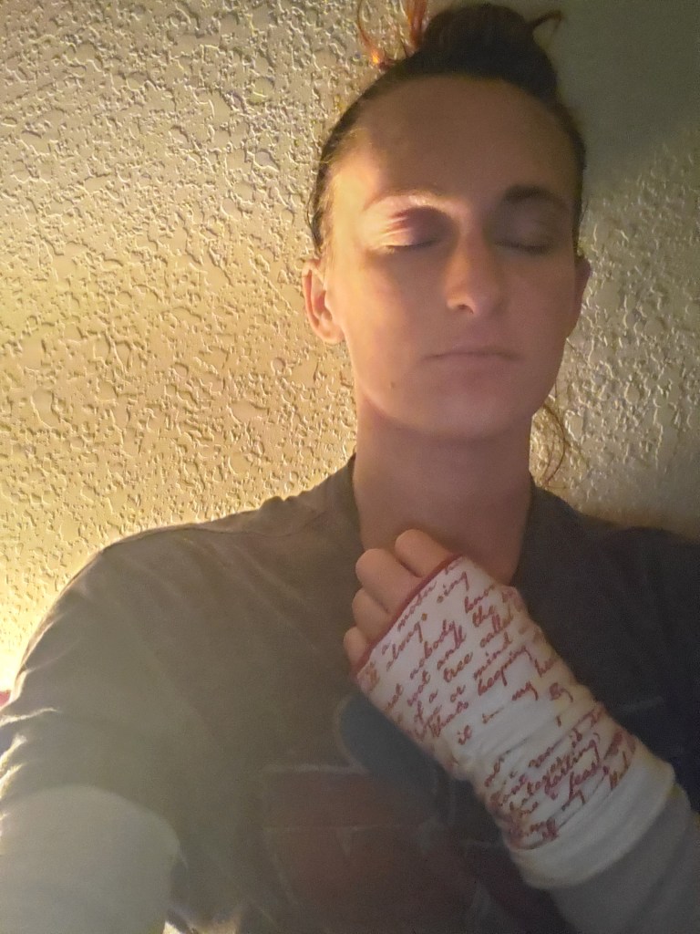 Uh, this is my most private time alone but also most stressful. Dealing with my leg alongside my aching skin while sitting on a chair and having to turn water on and off in order to bath is not relaxing. It’s a balancing act and takes way more time that usual to do. I can not wait to be on my own two feet again.