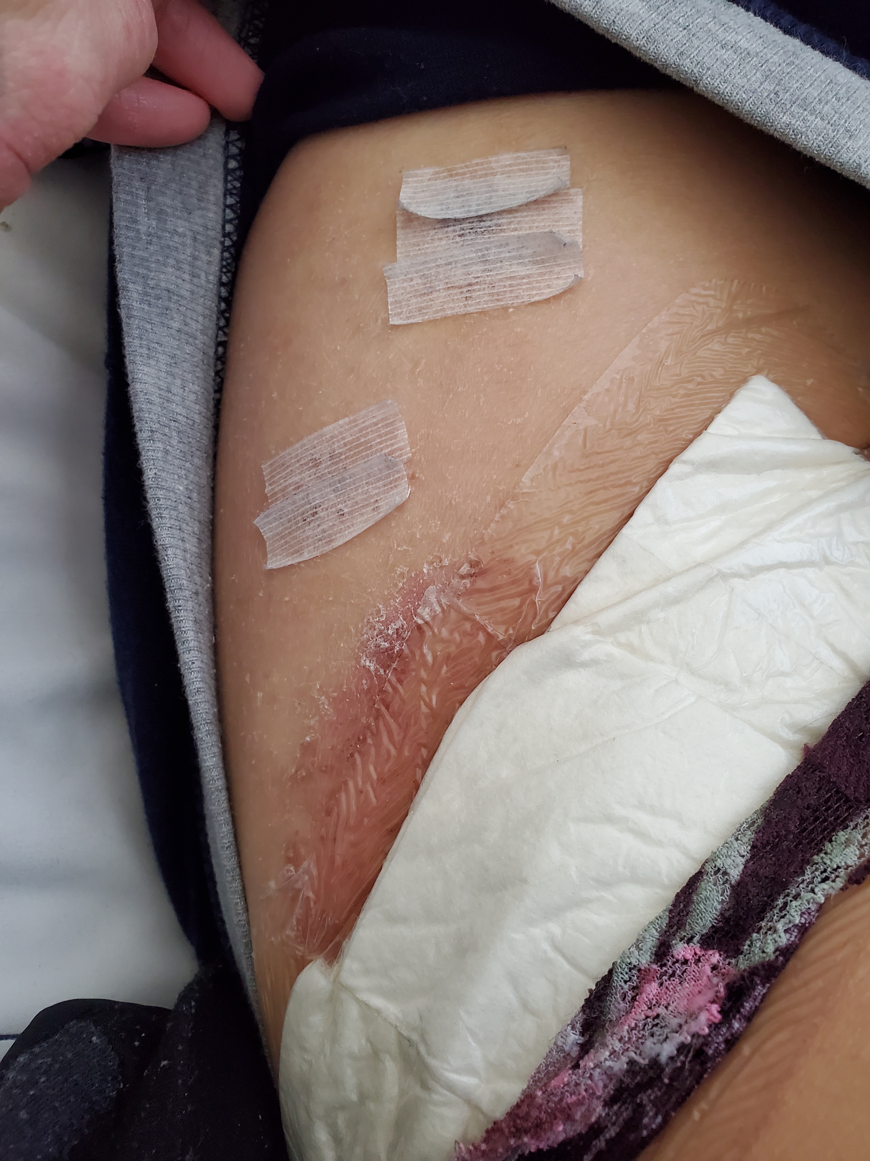 I still like wearing baggy pants so nothing is up against my suture spot. I also use bathing suit bikini tie bottoms, but it’s leaving me with a line of raw skin between my legs on both sides. I might switch back to normal underwear and only wear the bikini bottoms during PT and doctor’s appointments.