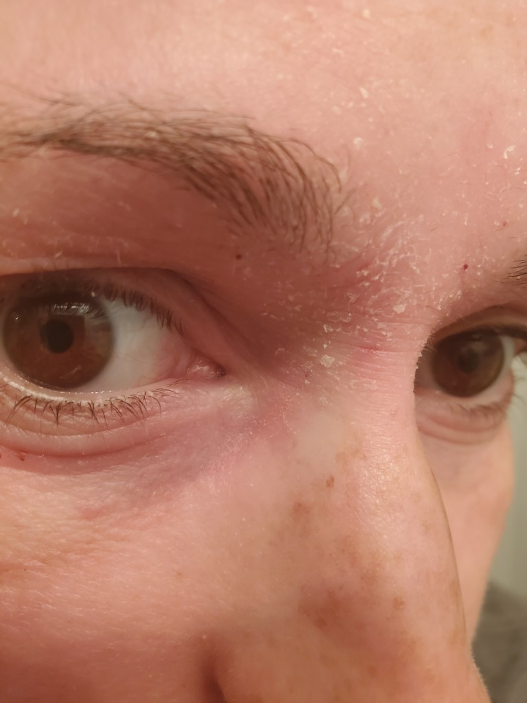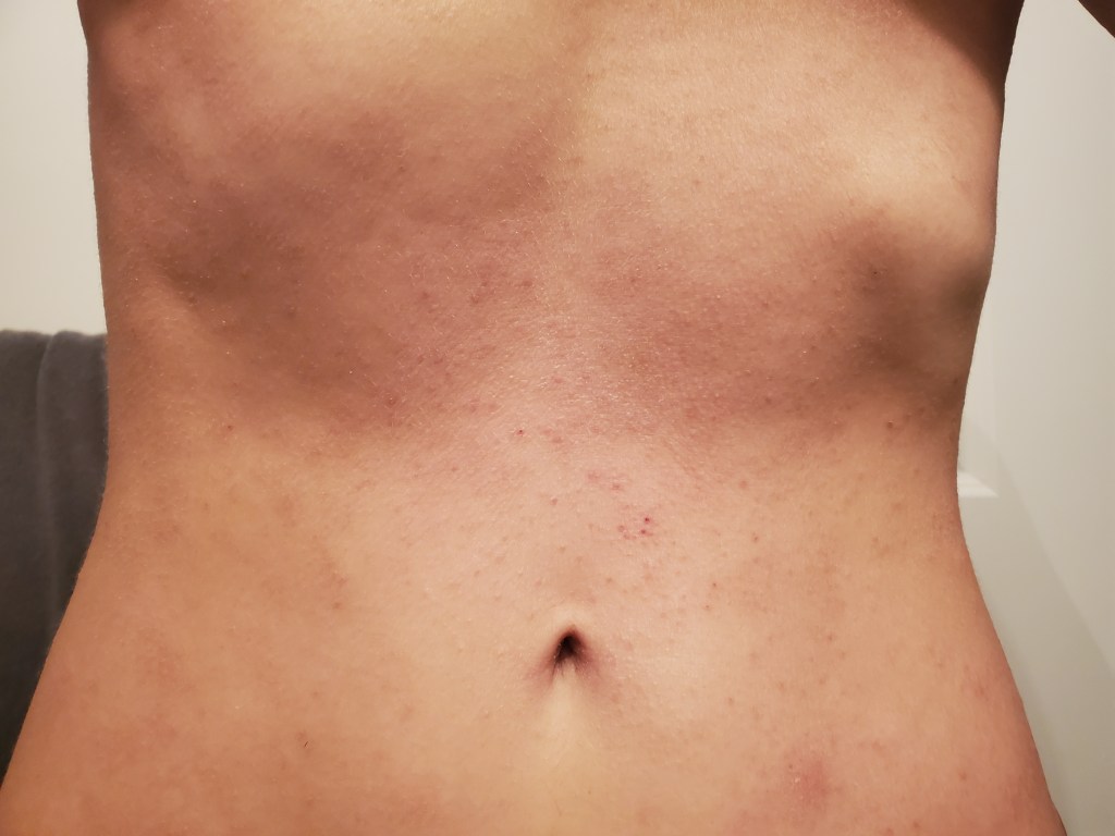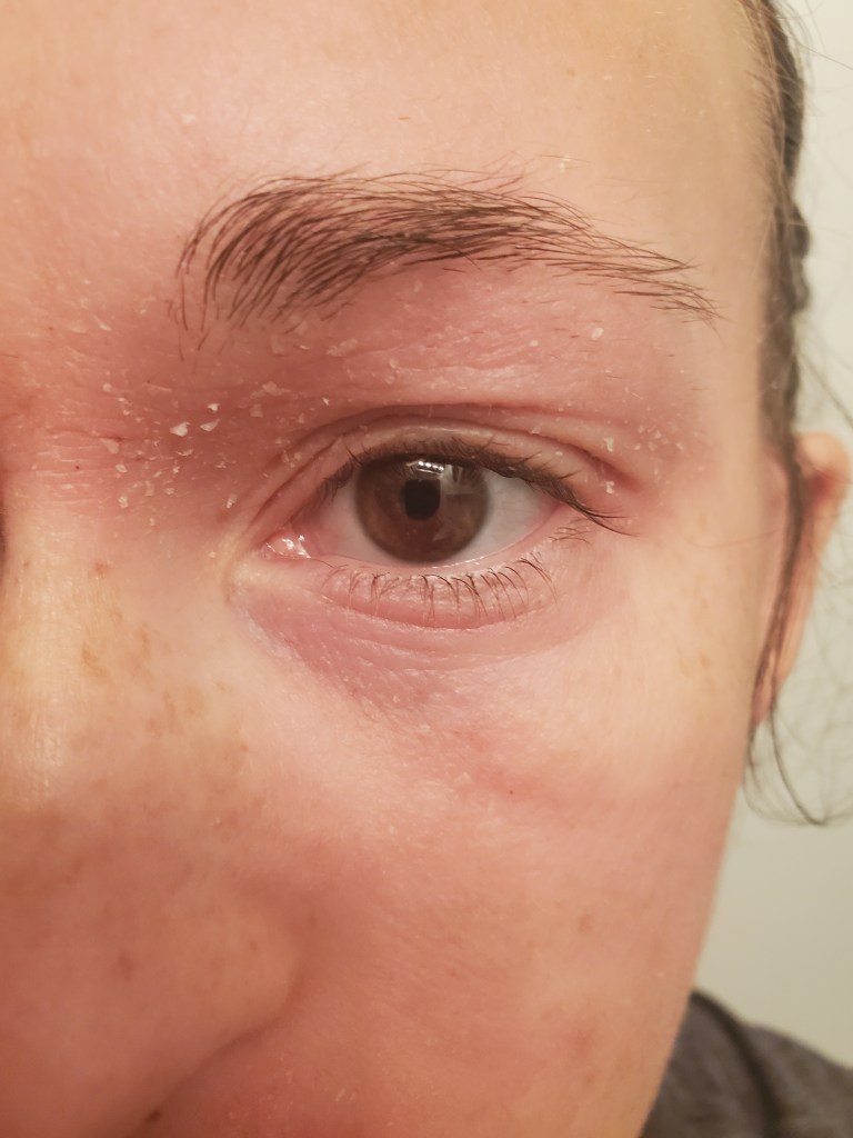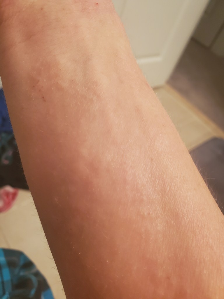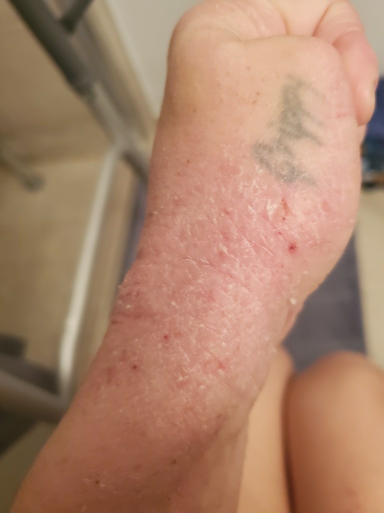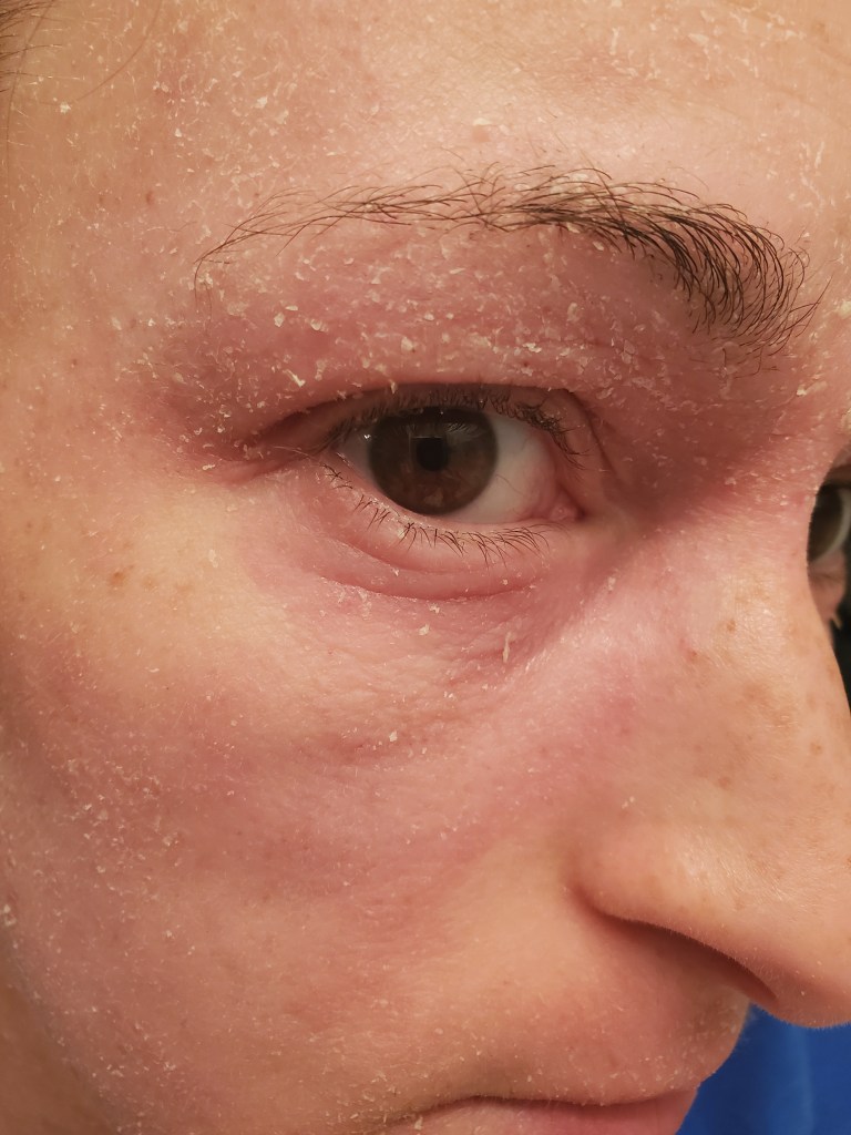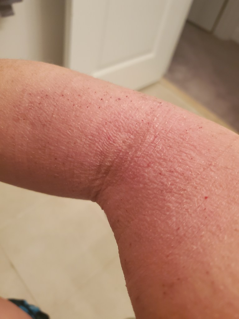 My skin was already in a mini flare beforehand, most likely due to stress, but now it is the worst it has been in a very long time. I have oozing, my skin smells, super flaking, tons of fatigue, and an itch that is relentless. My red sleeve is almost in full swing.