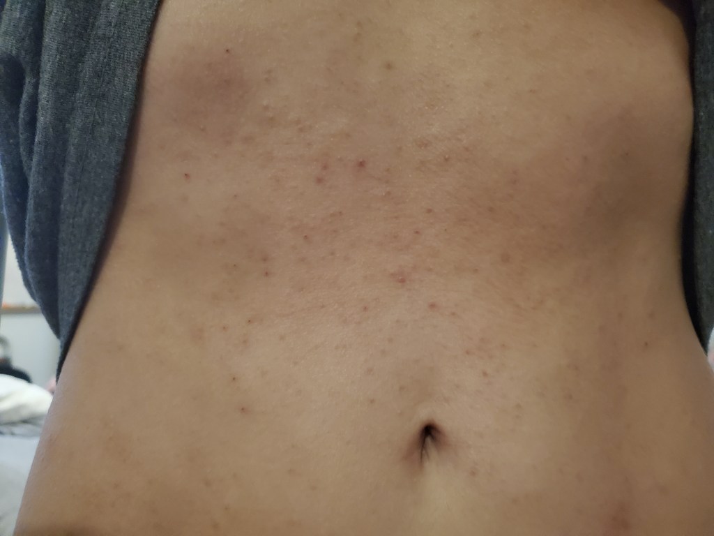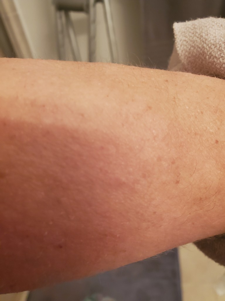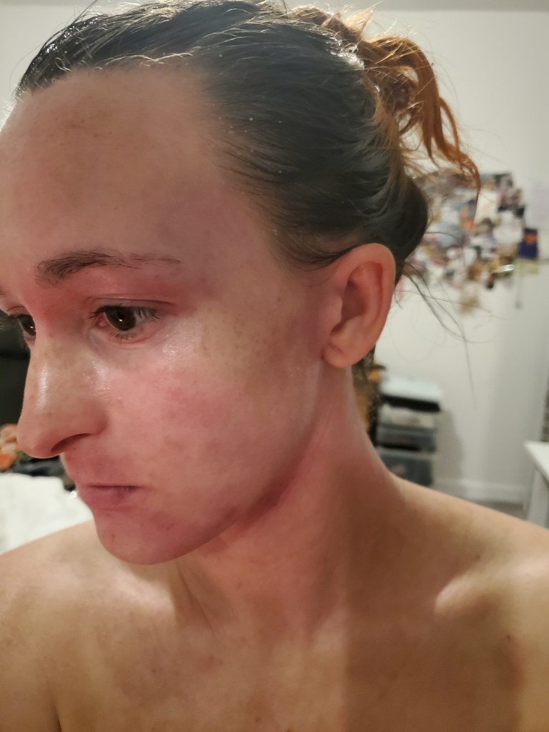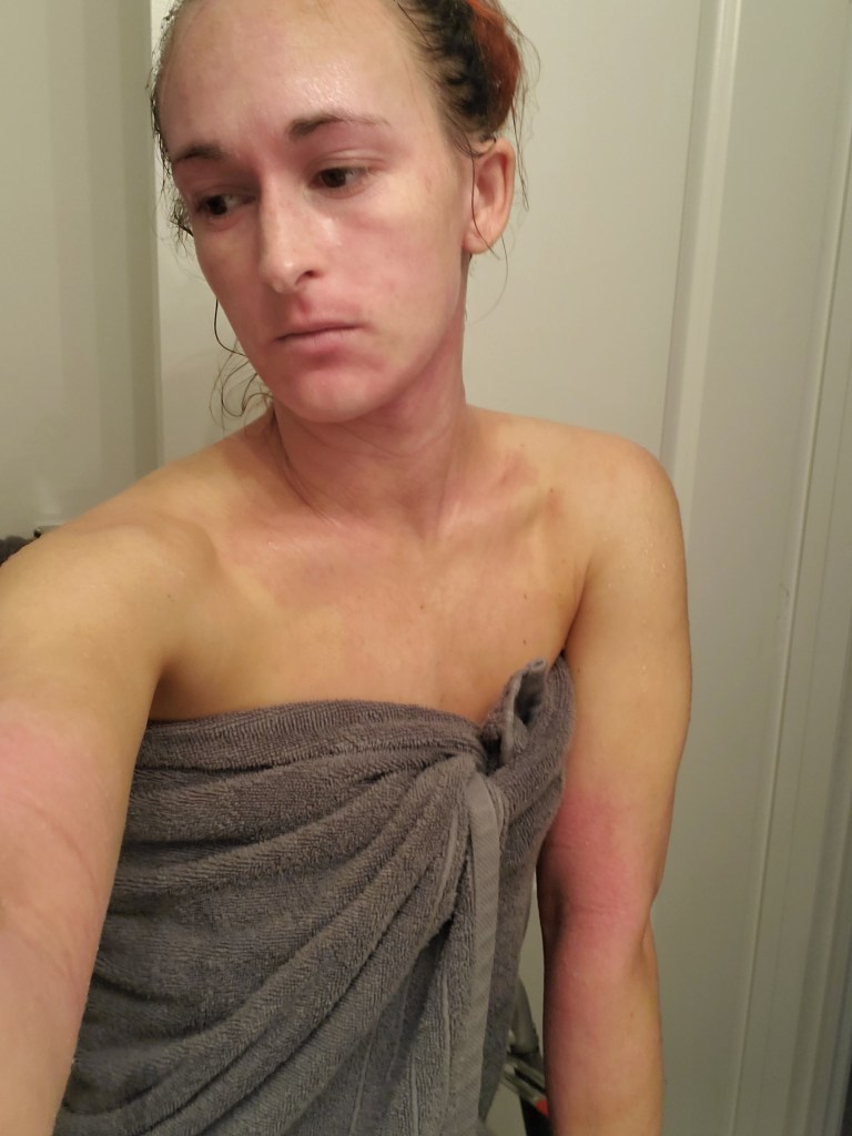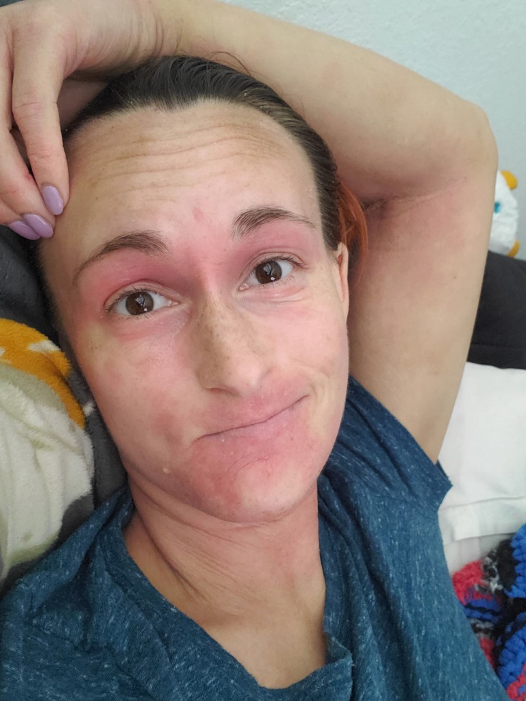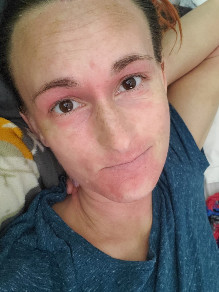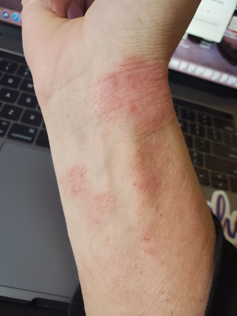 My skin was already in a mini flare beforehand, most likely due to stress, but now it is the worst it has been in a very long time. I have oozing, my skin smells, super flaking, tons of fatigue, and an itch that is relentless. My red sleeve is almost in full swing.