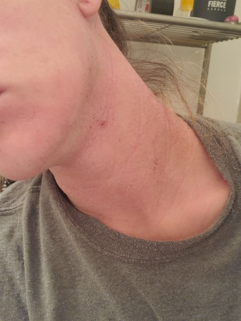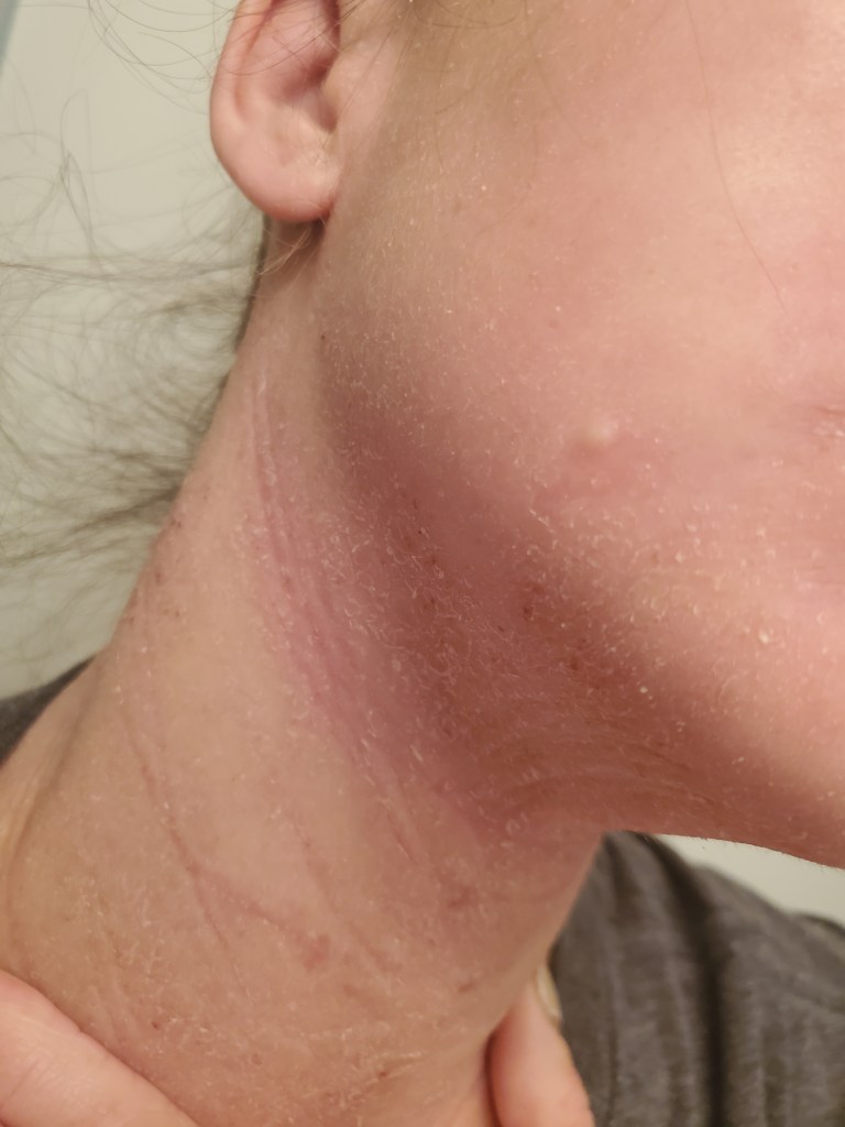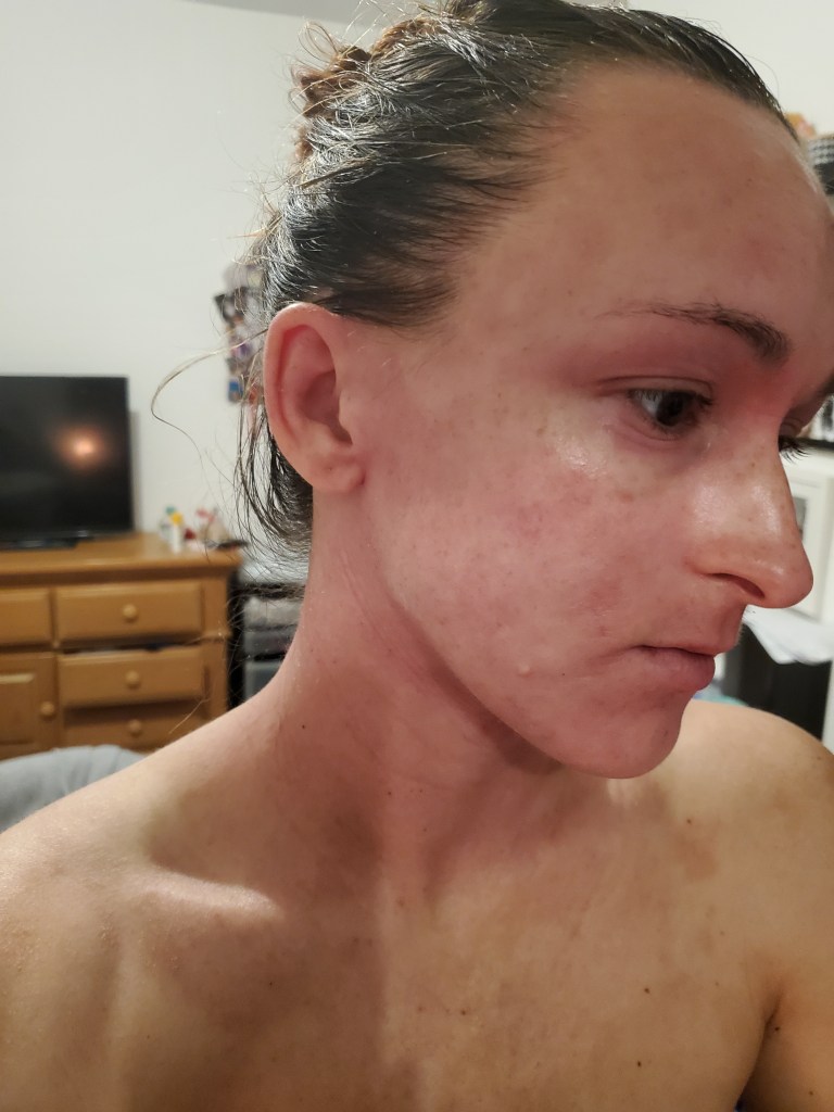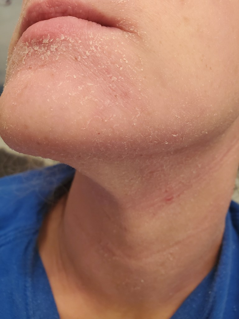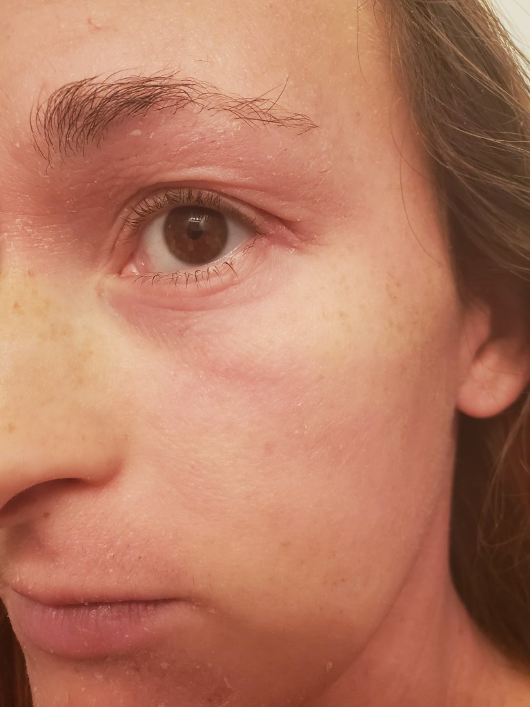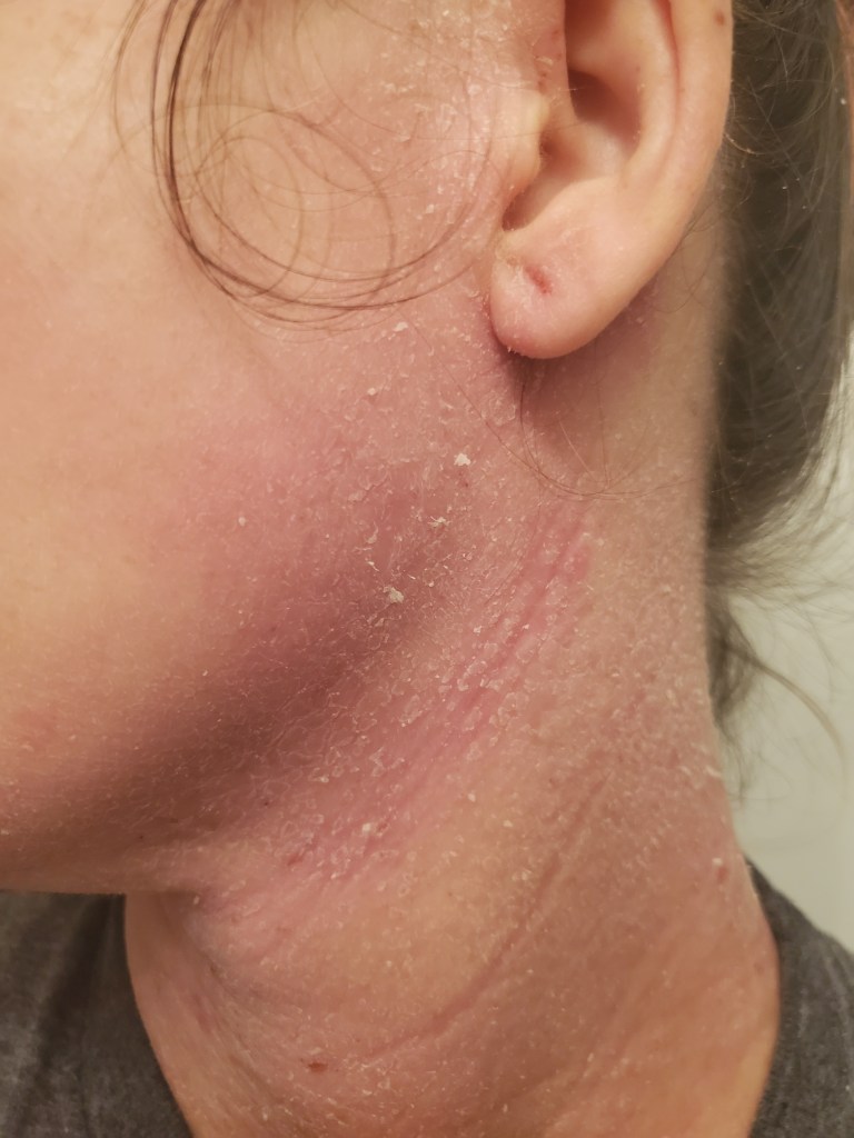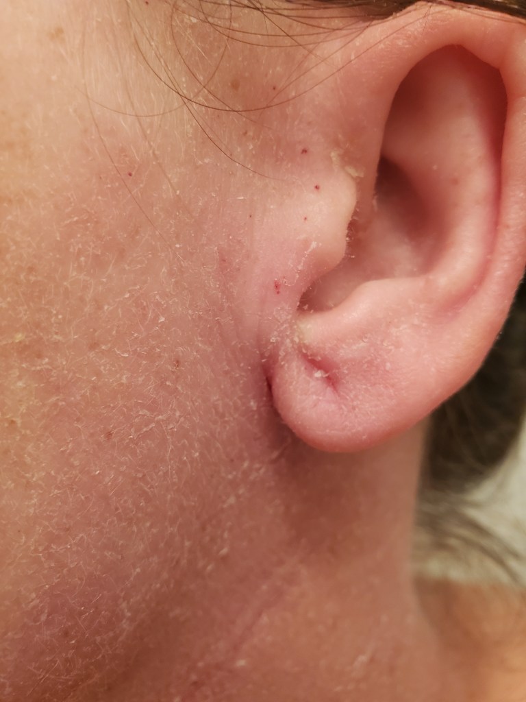 I was hoping my days of posting about TSW (personally) were over, but here we are, fighting the good fight. My pictures are disappointing to look at, and I don’t wish to scare any newcomers. TSW is a different journey for everyone. I wasn’t a heavy user in the sense of a steroid class (only a 6), but my immune system was being overloaded for about three years with antibiotics, antifungals, topical steroids, immunosuppressives (like Protopic), and different antihistamines before I knew about Topical Steroid Withdrawal. Who knows the damage all of that did to my system.